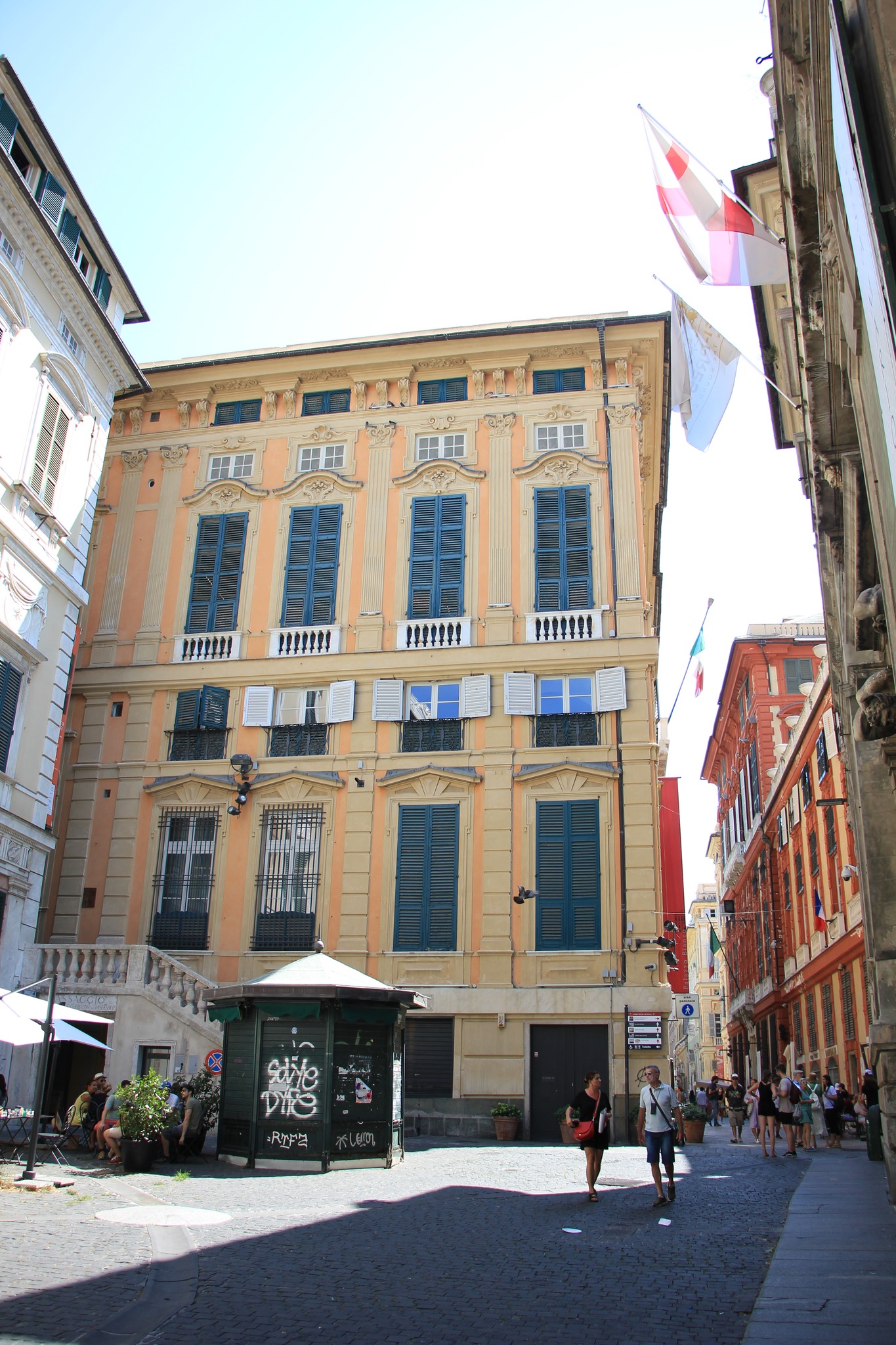 С Генуей связано много историй. Тут был основан как считается первый коммерческий банк, пороги которого тщетно обивал никому неизвестный Колумб со своими безумными стартапами. А в центральной части города находится квартал дворцов Палацци-деи-Ролли, где на небольшой площади собраны десятки архитектурных шедевров, и который претендует быть первым в европейской истории проектом централизованной городской застройки.