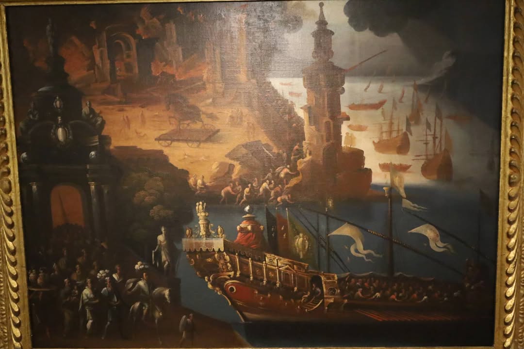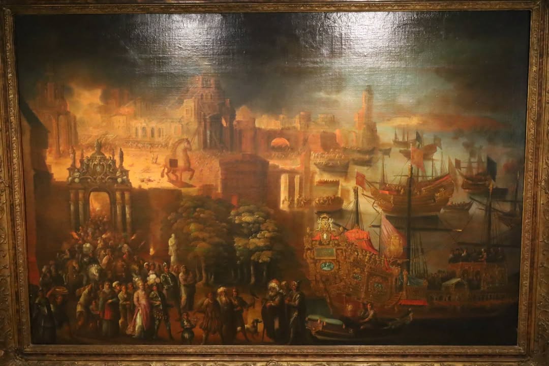 Больше всего мне понравились картины, изображающие взятие Трои. Из них му узнаем, что в осаде принимали участие испанские галеоны и тяжелые конные рыцари. Но самое интересное открытие которое я совершил - троянский конь был иноходцем! Именно так он изображен на обоих картинах. Кому вы будете верить, сказочнику Гомеру, или наследникам беотийцев, которые, в свою очередь ведут род от тех самых ахейцев?