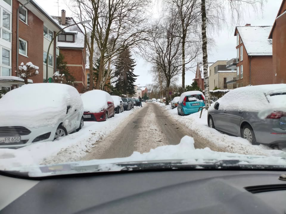 • Говорят, самая снежная зима в Гамбурге с 1979. Похоже на правду. С лопатой и цепями нормально.