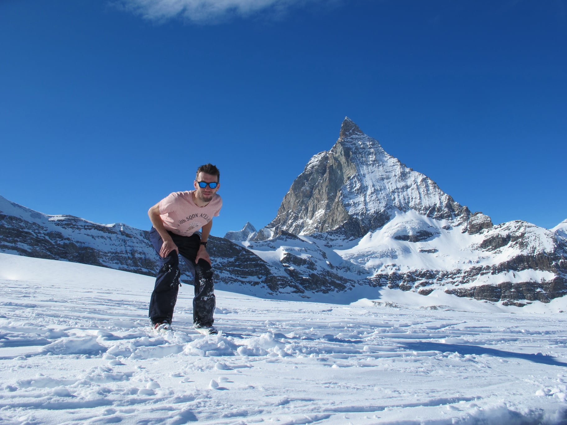 Дальше было много приключений. Я ночевал на мраморном полу аэропорта Женевы, пересекал долину Куршевель с 20кг рюкзаком на лыжах, едва не слетел в пропасть в диком Гудаури, спускался полнолунной ночью в долину Ишгля, ехал на бугеле в 25 м/c с видом на Маттерхорн и пил шприц из вдовы клико на отрогах Монблана...