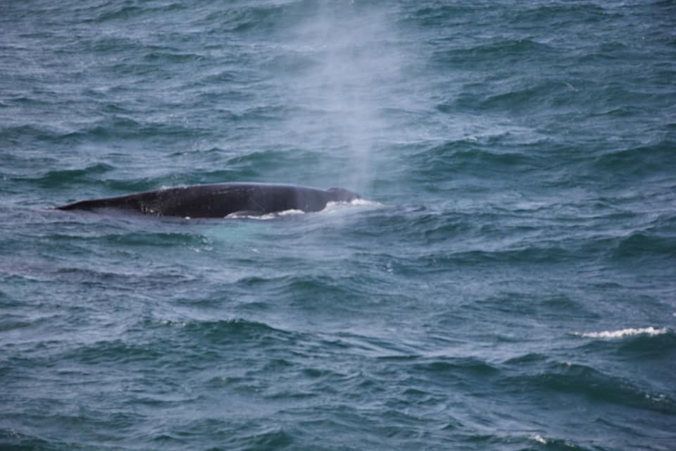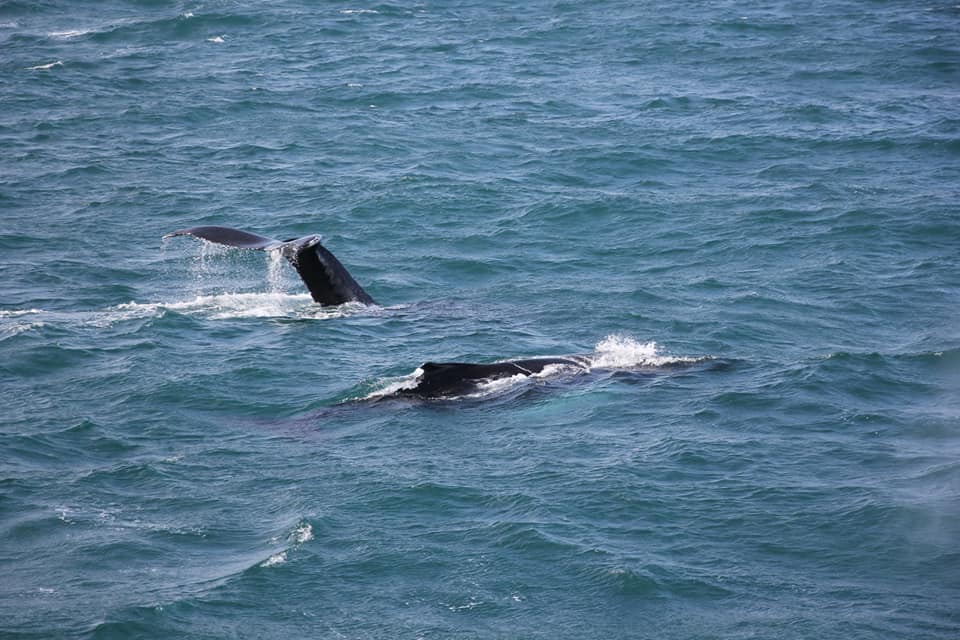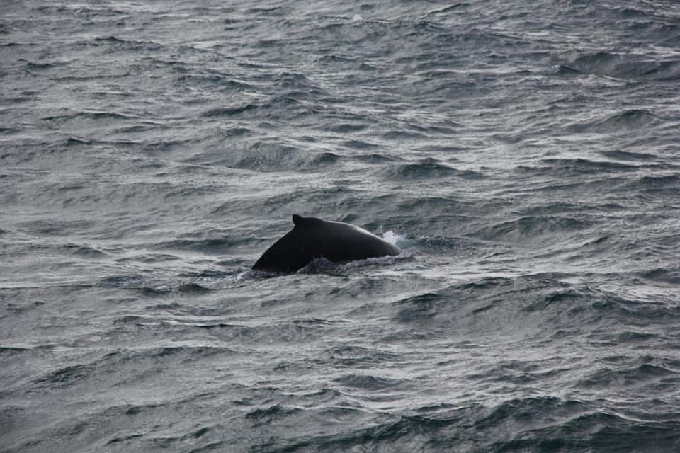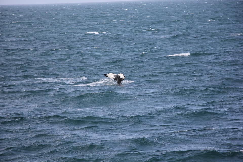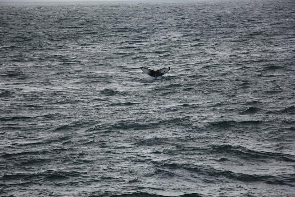 Проще всего замечать китов именно по фонтанам - они хорошо видны даже на большом расстоянии. А хвост означает, что кит нырнул и вернётся через минут 5.