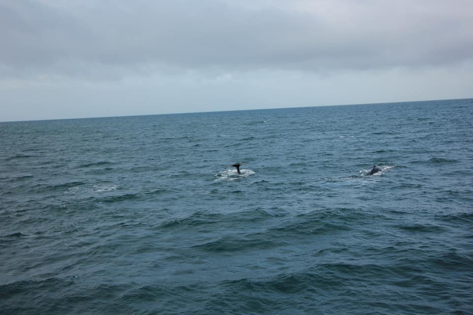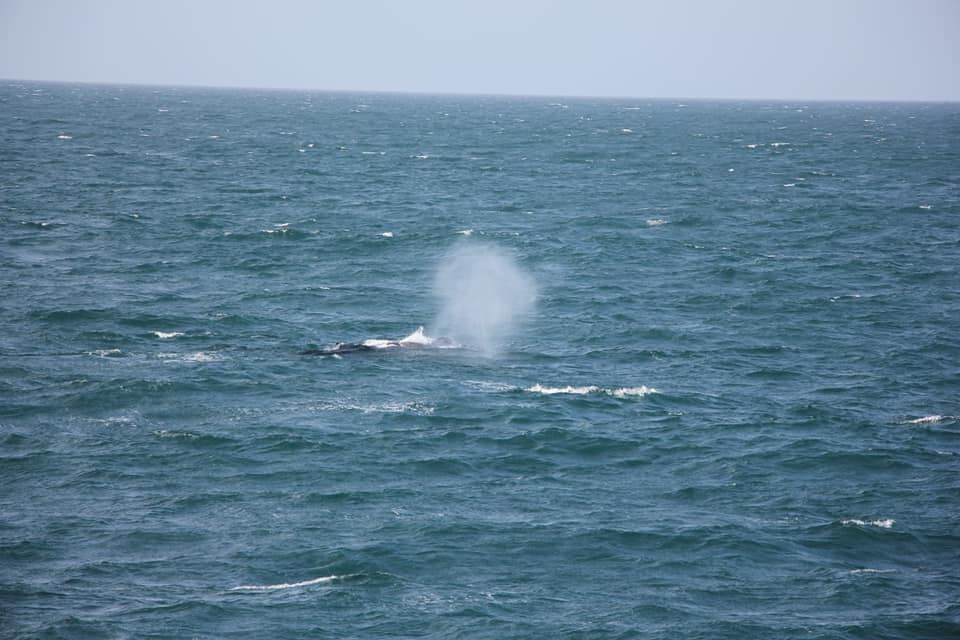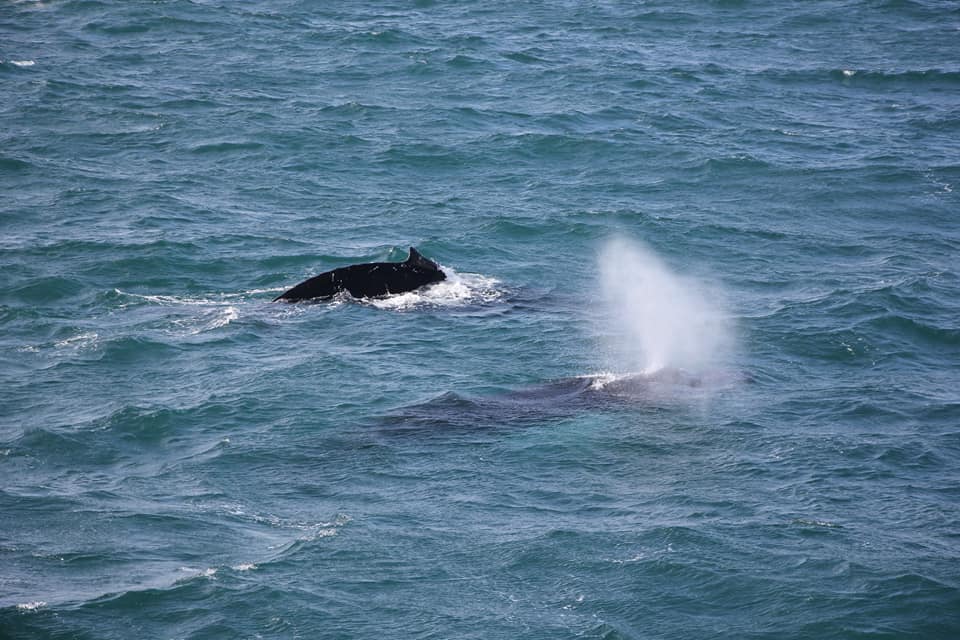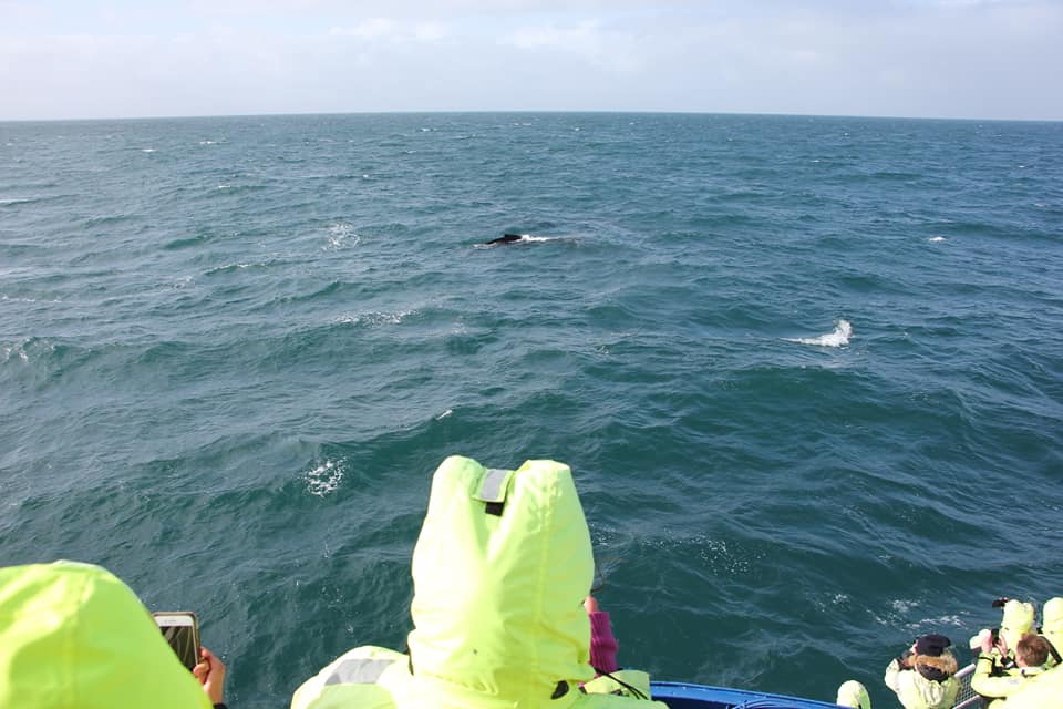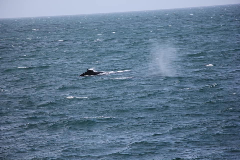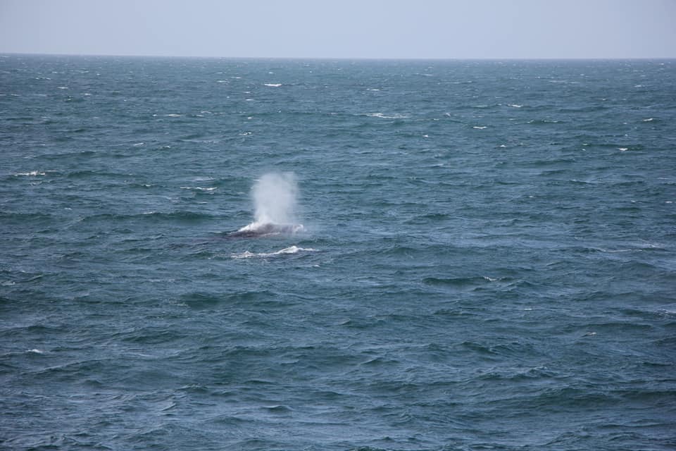 Проще всего замечать китов именно по фонтанам - они хорошо видны даже на большом расстоянии. А хвост означает, что кит нырнул и вернётся через минут 5.
