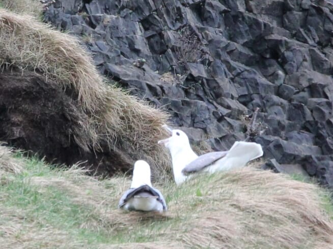 А ещё, хотя для них и рано, встречали тупиков и одного огромного буревестника.
