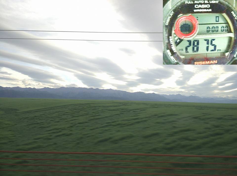• Вот уже пол часа (на скорости 200 км/ч) за окном такой пейзаж. Зеленые, как сказали бы китайцы, нефритовые, поля. А высота 2800... А еще выше, на 3300, пасутся стада баранов и коз.