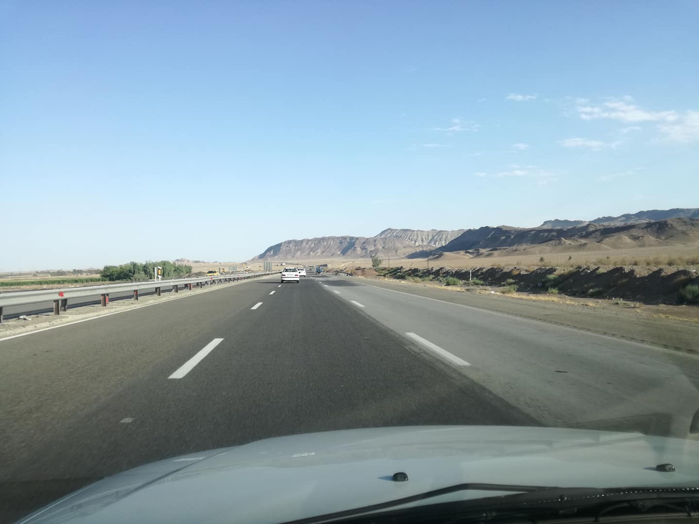 Меня сильно пугали иранской манерой езды. В одной иранской группе, где я задал отвлечённый вопрос о прокате местные ребята устроили форменную истерику на сотни ответов. Мол иранские водители сумасшедшие и вы все умрёте. На практике оказалось что в городе движения хоть и особо азиатское, но ничего катастрофического. На трассе сегодня было пусто и никто не превышал лимит 120. Так что мы успевали слушать музыку, читать книги и делиться впечатлениями не особо отвлекаясь на движение.