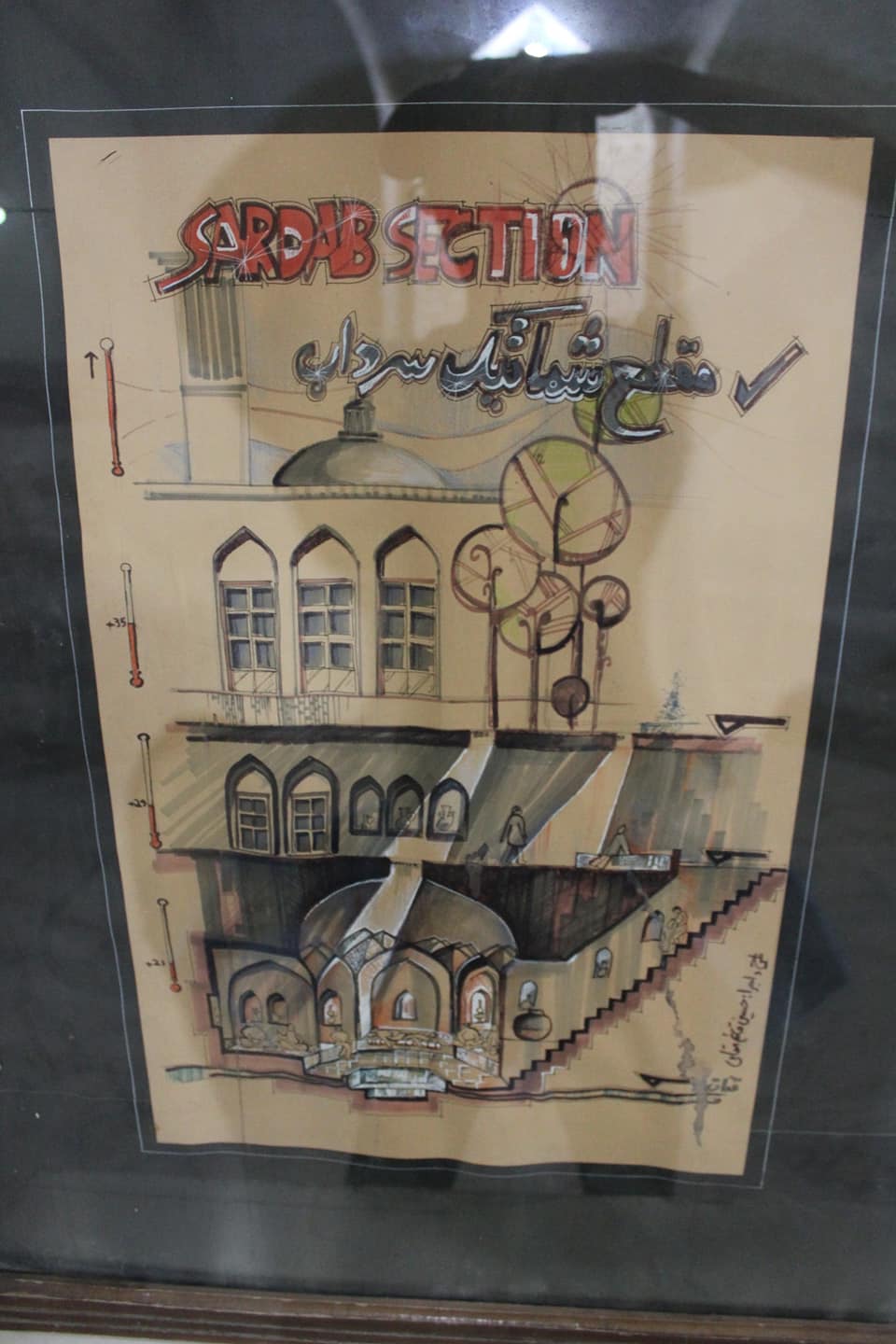 В музее воды Йезда рассказано о том как получают, охлаждают и распределяют воду в пустыне. Вода поступает в город по канатам - дреаней системе подземных каналов - из окрестных гор. Канаты Йезда тянутся на сотни километров. Собранная вода хранится в подземных резервуарах, отводится при помощи арыков в сады и фонтаны.