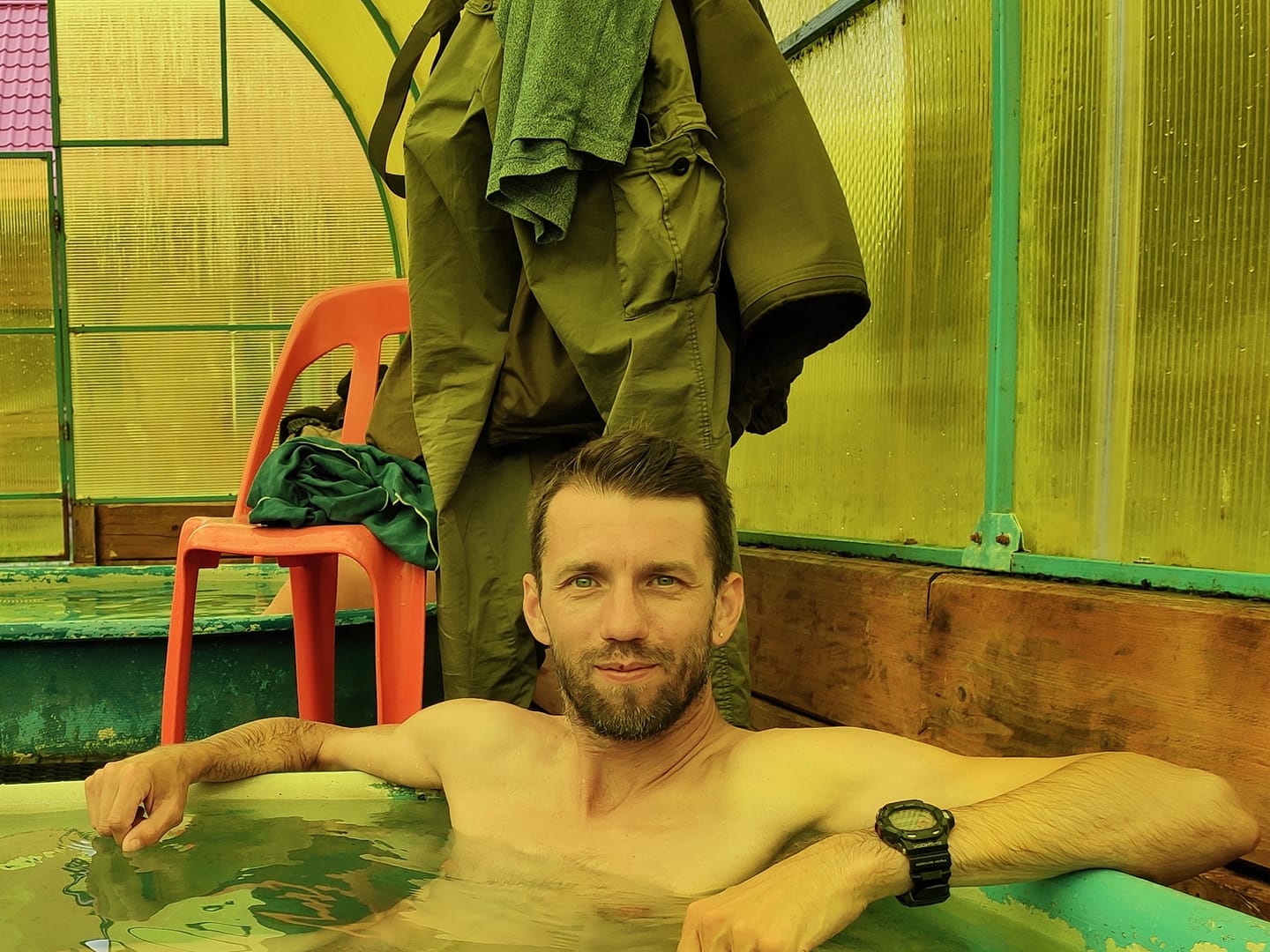 В путешествии очень важно свернуть с трассы и посидеть пол часика в термальном источнике. Это полностью компенсирует 4 часа сна.