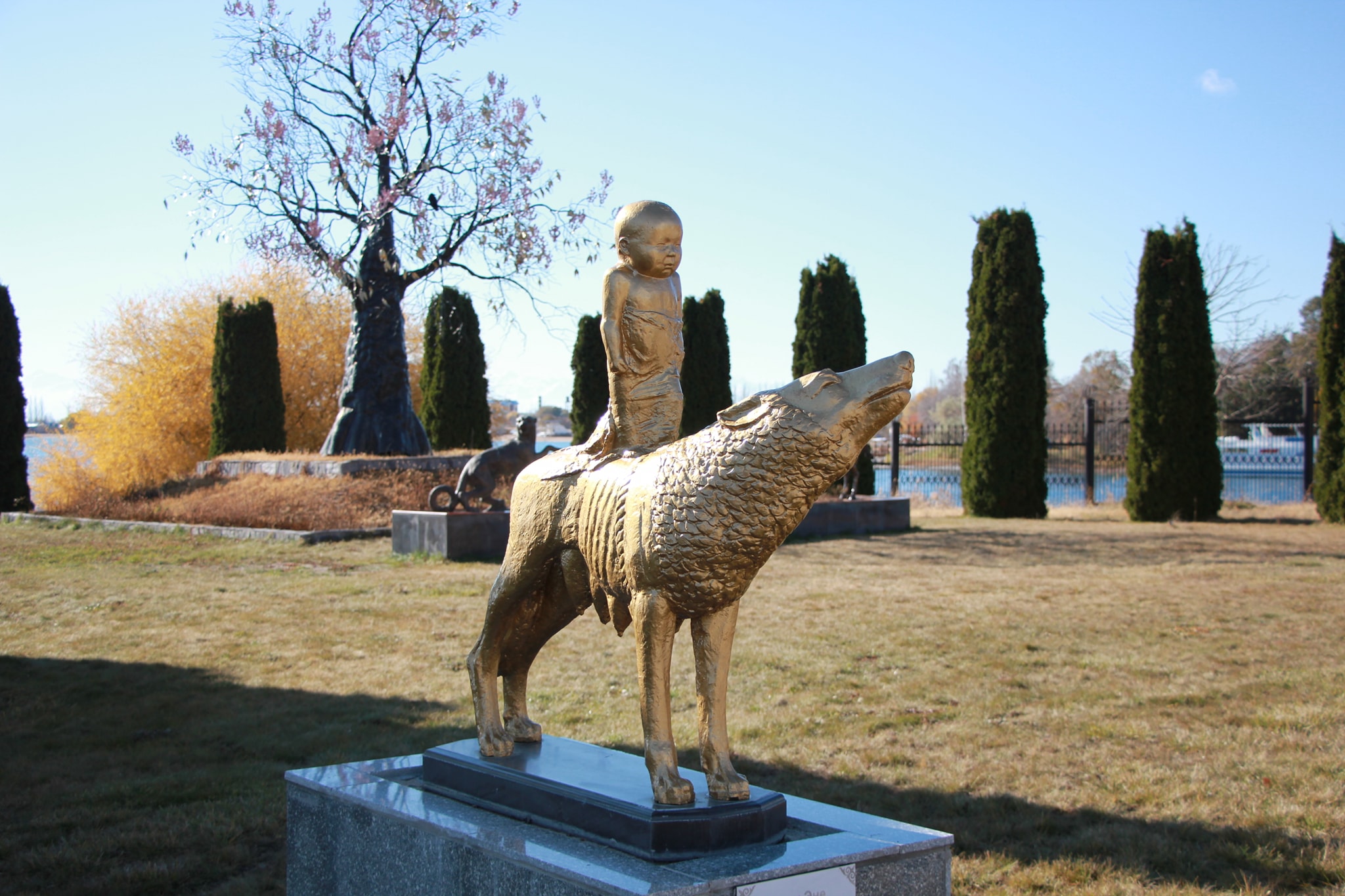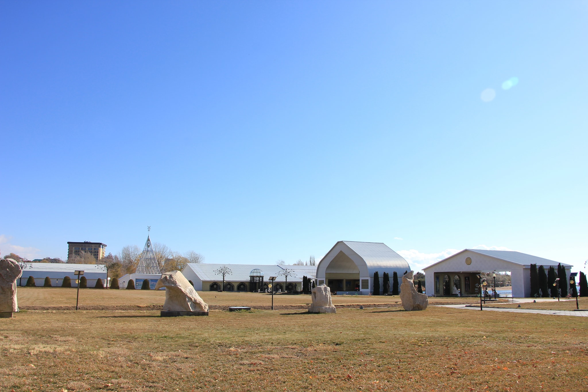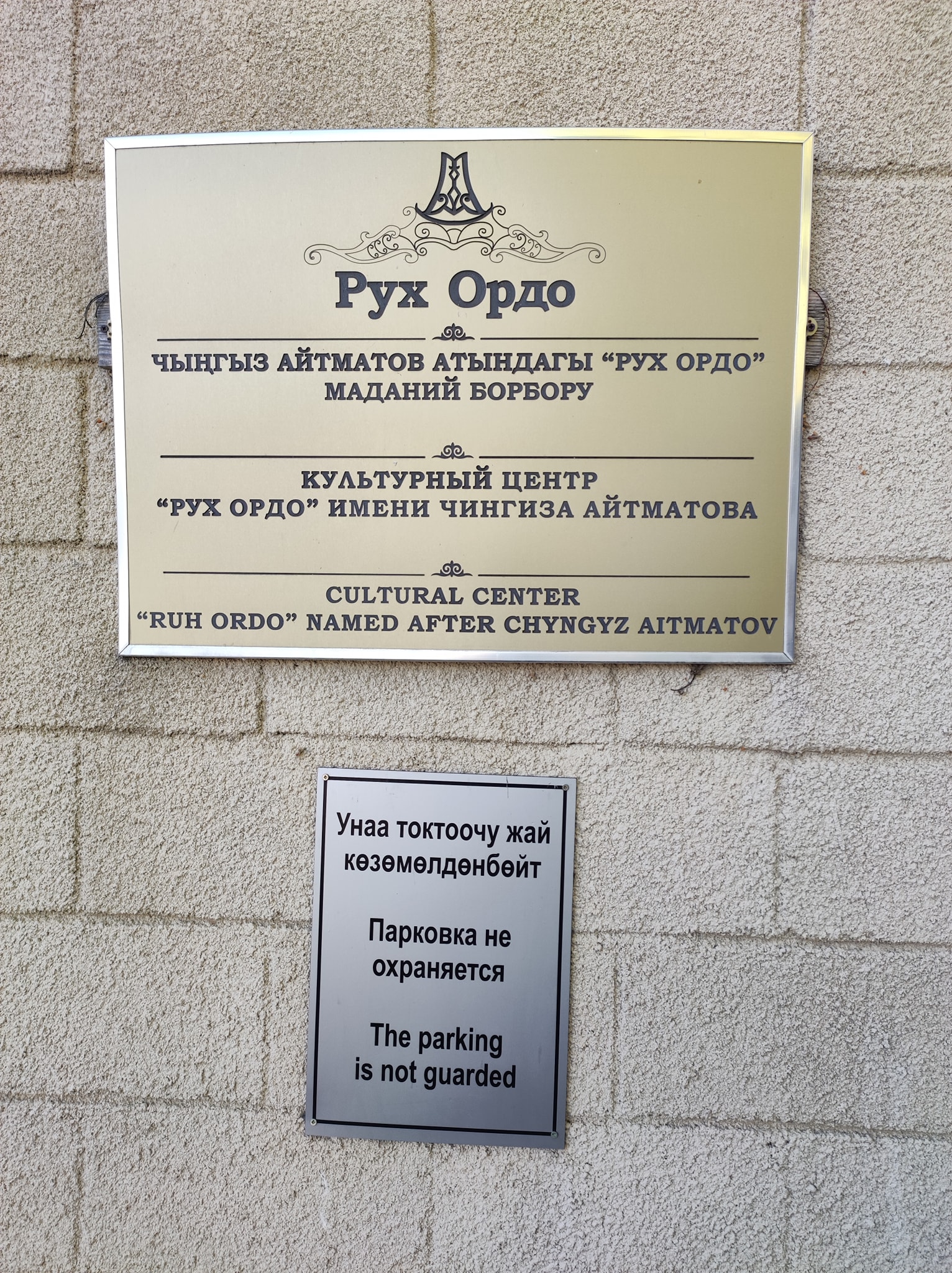 Посетили культурный центр «Рух Ордо» им.Ч.Айтматова. Я скептически отношусь к творчеству и личности Айтматова и потому получил огромное удовольствие. Композиция парка, это такое мини Скопье, но со вкусом и юмором. Айтматову в компанию выделили: