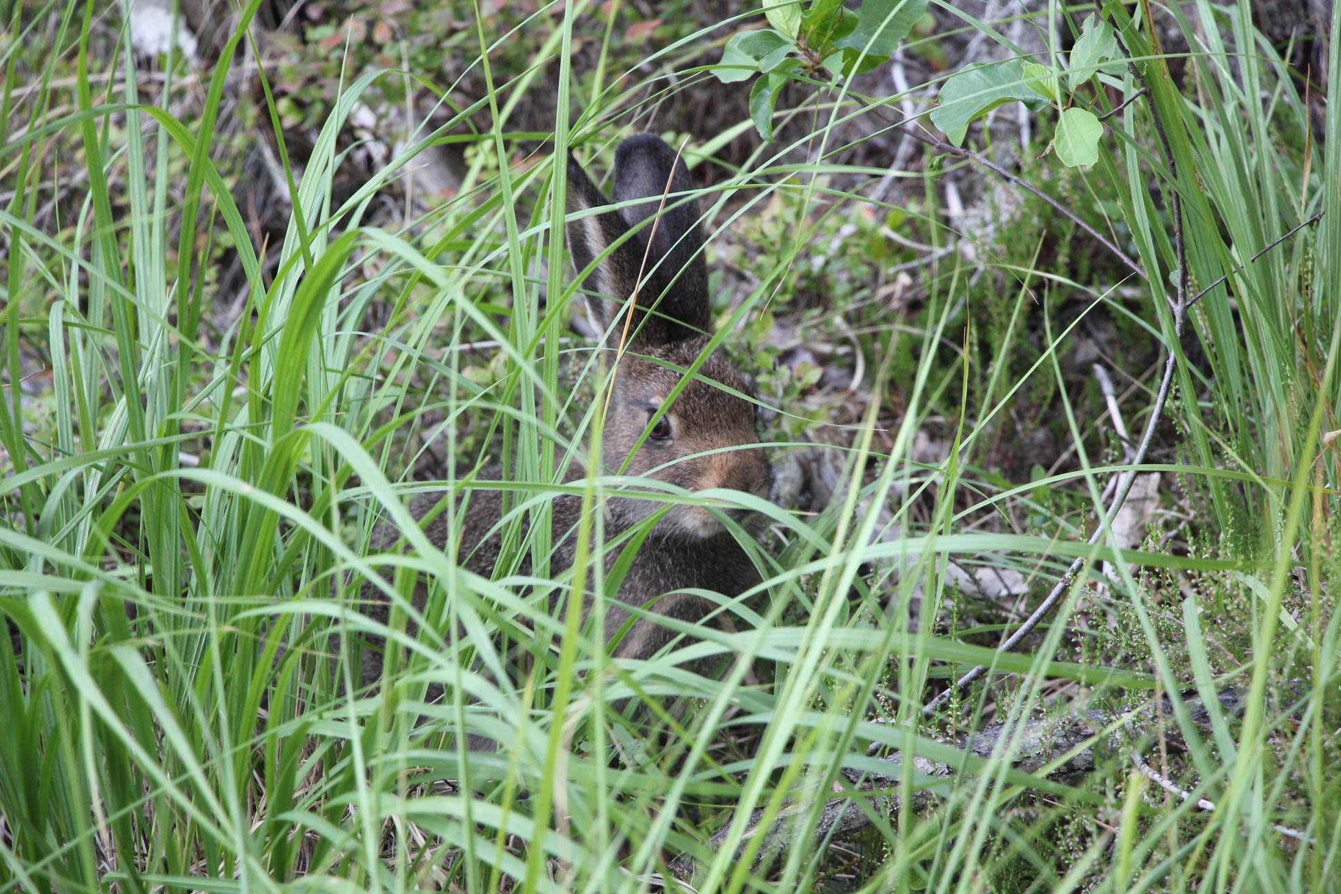 Заяц просто пришел в лагерь. Вышел из кустов, подошел к нам метра на 3, пару минут принюхивался, рассматривал и потом отошел в сторонку пастись. Царь зверей.