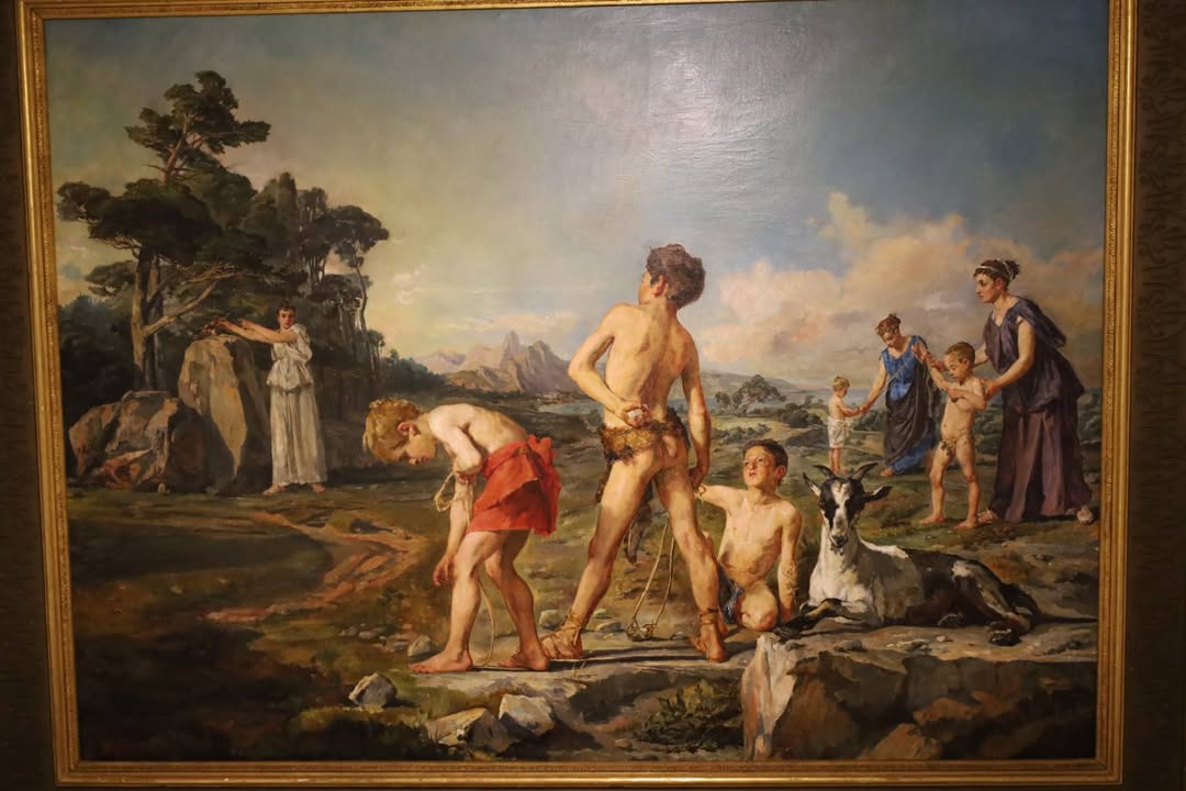 Хороша, но очень скромна коллекция светской живописи. Одна из картин изображает идиллический пейзаж на котором матери учат мальчиков обращаться с пращой. Это иллюстрация к известной байке о древних беотийцах, которых уподобляли спартанцам. По легенде камнеметатели были столь искусны, что ценились как наемники и в этом качестве участвовали в карфагенских событиях.