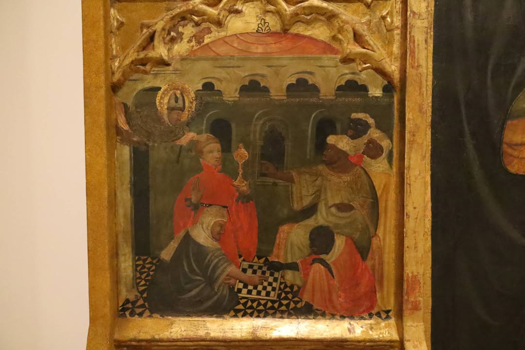 Понравилось изображение шахматной партии католиков с маврами - католикам подсказывают ходы прямо с неба, на что мавры бойко возражают.