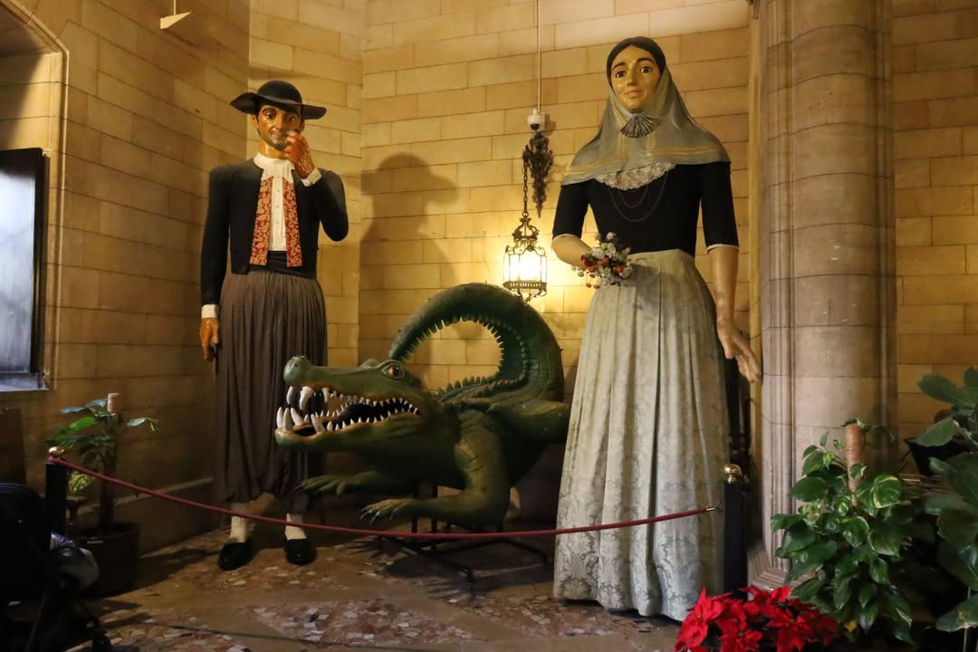 А вот в горсовете, наоборот - огромные фигуры крестьян с крокодилами и инопланетными котами, которых я бы поостерегся.