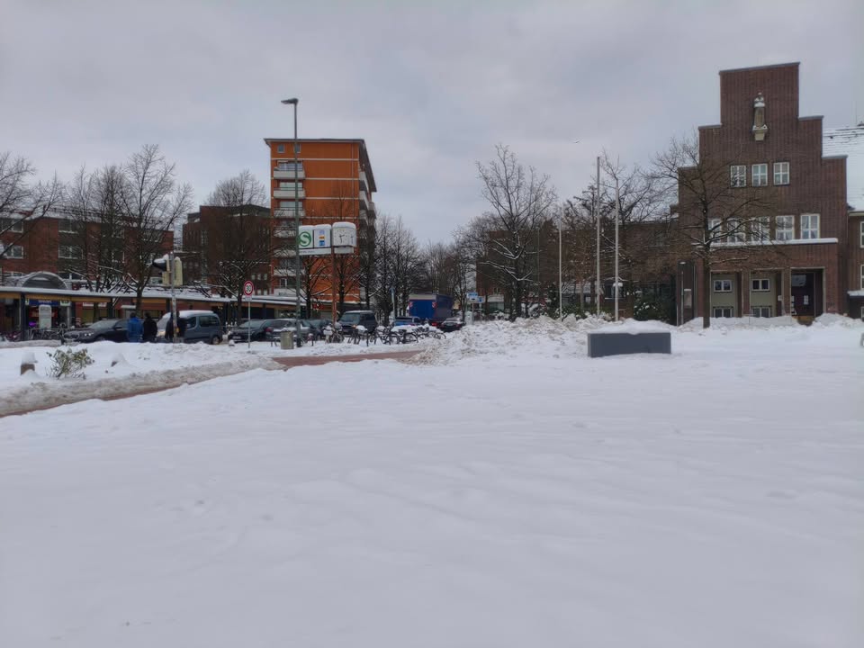 • Говорят, самая снежная зима в Гамбурге с 1979. Похоже на правду. С лопатой и цепями нормально.